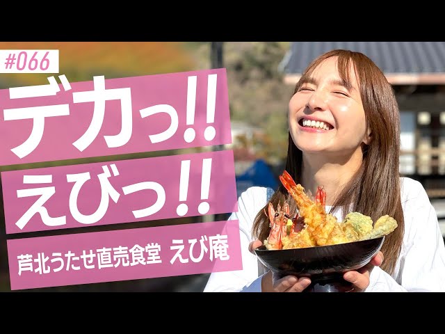 今回は、「芦北うたせ直売食堂 えび庵」におじゃま♪芦北名物の一つ、天然の足赤エビをたらふく味わえると聞いてやってきましたよ。ぷりっぷりのエビを堪能するなら「足赤えび天丼」がおすすめ。運がよければ、巨大な足赤エビをど~~~んと盛り付けた“特大”を味わえますよ。ふっちーは運よく特大サイズの足赤エビをゲット!みなさんもぜひ、“ぷりっぷり”を食べ尽くしにきてくださいね♡